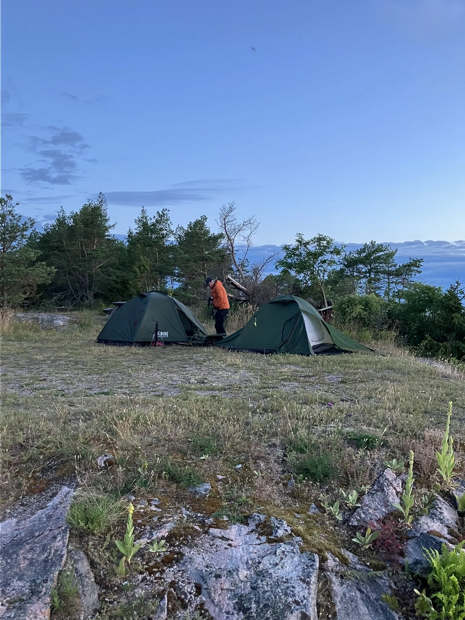 Efter kaffet blev det dags att fixa frukostgröten som kunde piffas till med blåbär från buskarna runt tältplatsen.