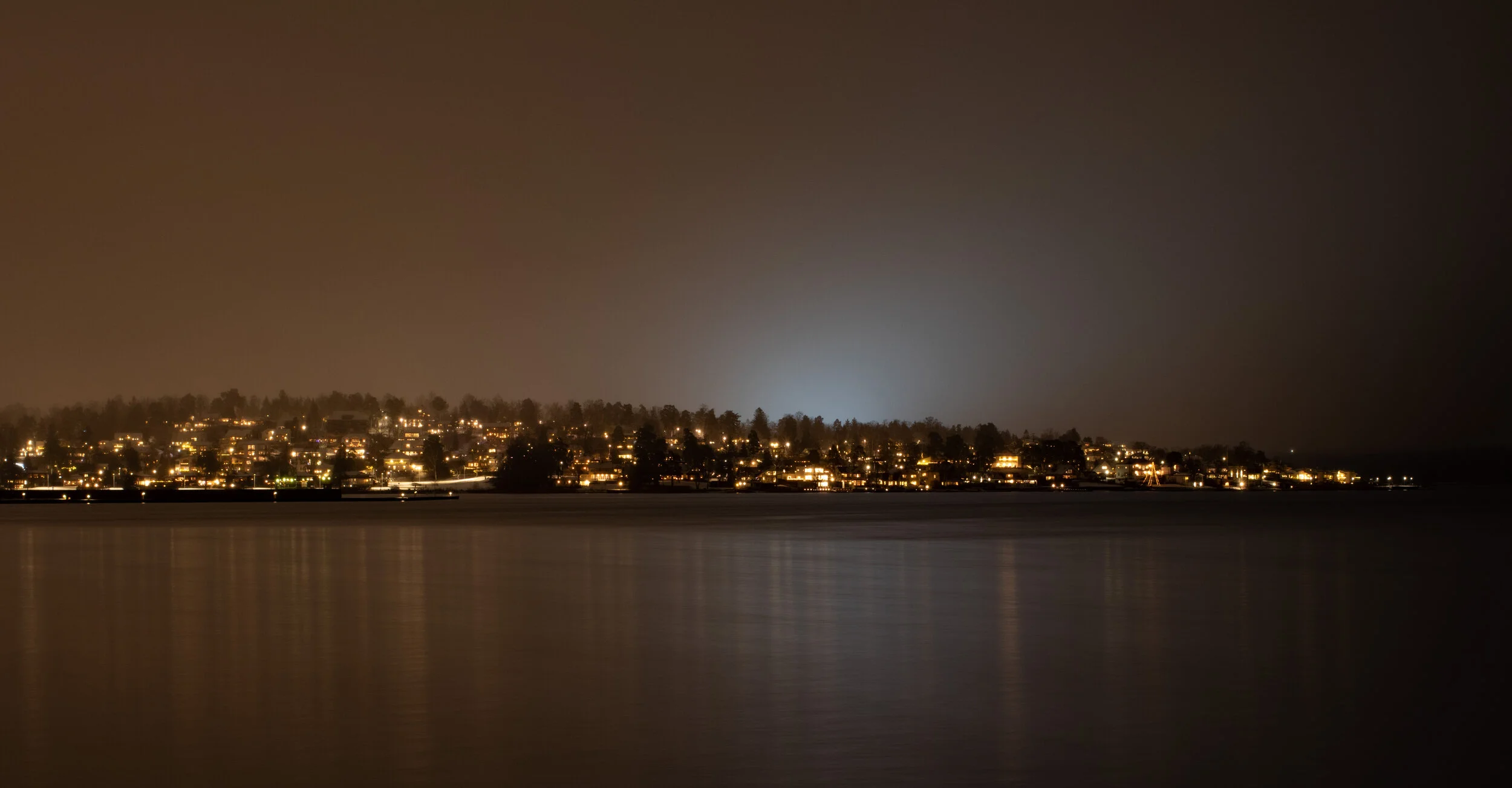 Två kameror, på två stativ riktades åt samma håll för att försöka fånga ljus, snö, vatten och mörker på allra bästa sätt.