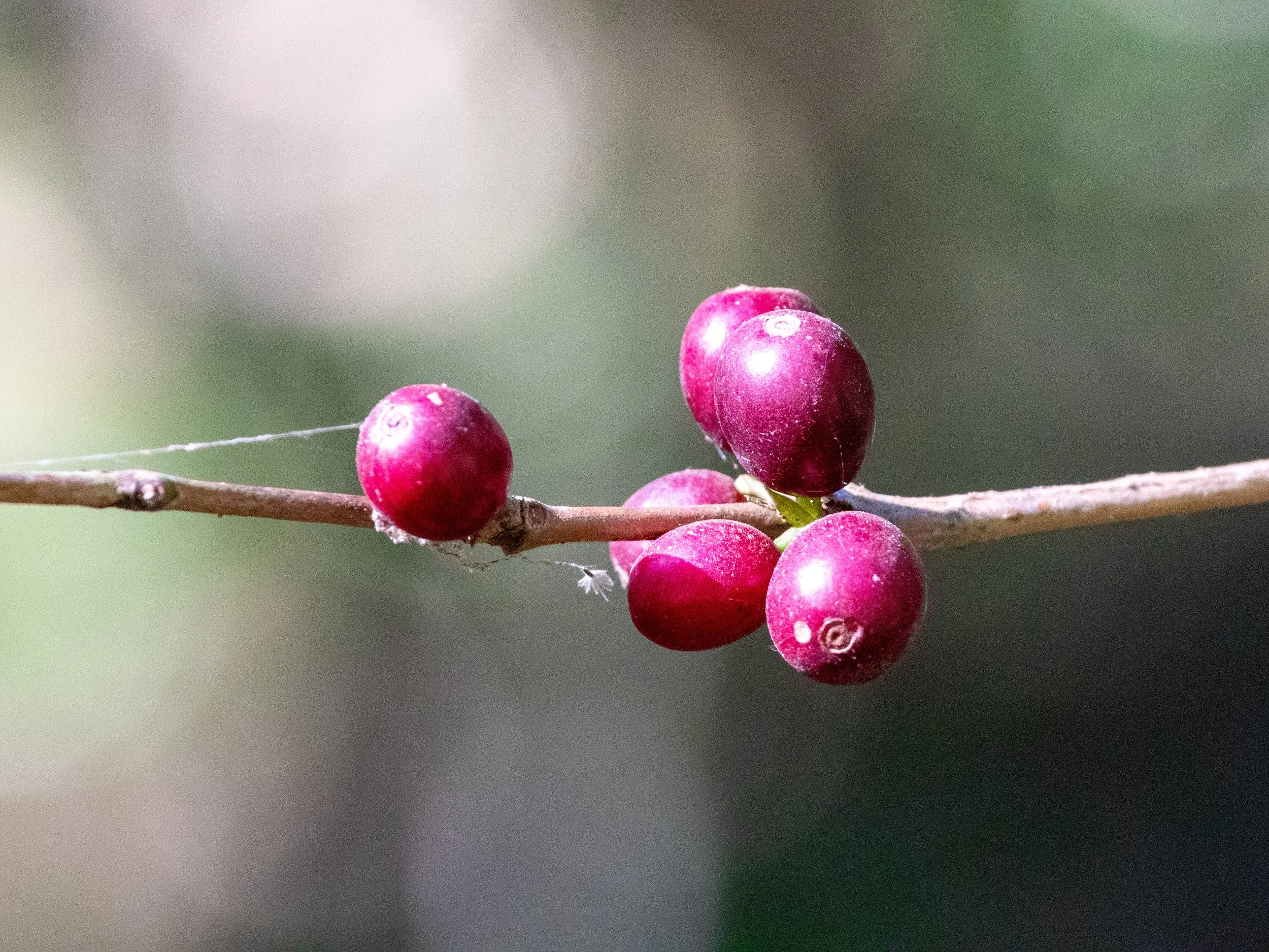 Sedan tog vår guide med oss på en 300 meters promenad in i djungeln till nästa fågelgömsle. På vägen passerade vi Arabicabönor,